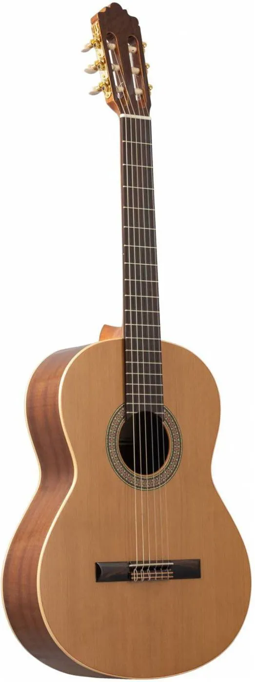 Этот инструмент с глянцевой отделкой обладает шелковистым звучанием и простой минималистичной эстетикой, верхняя дека выполнена из массива кедра.